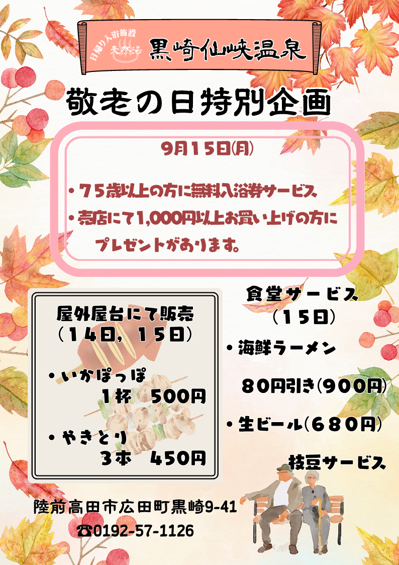 ・入浴した75歳以上の方に次回使える無料入浴券をプレゼント