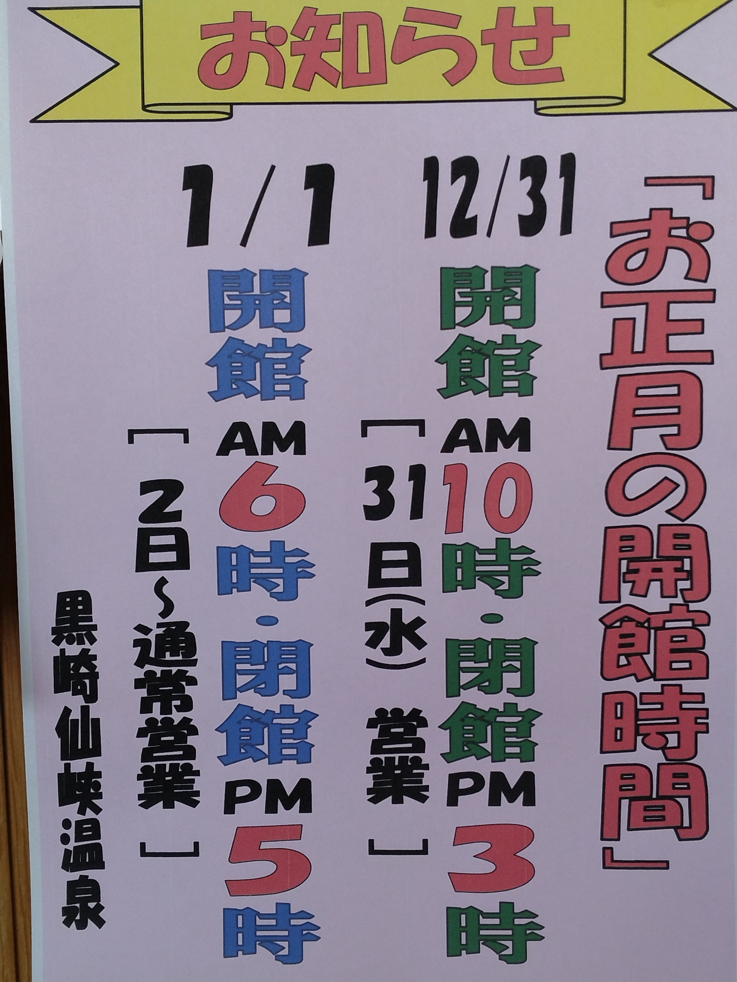 下記は年末年始の営業についてのお知らせです。